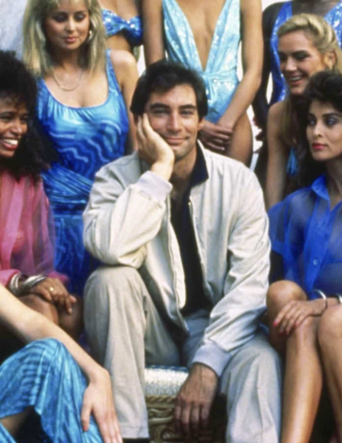 Famously, the Bond films of the late 1980s reflected the anxieties of the period by having Bond sleep with fewer women. Less obviously, this cautiousness extends to the costuming. It wasn’t until a friend pointed it out to me during a screening of The Living Daylights at the BFI that I noticed how loose-fitting much of the men’s clothing was in the film, concealing their bodies and making them less obviously objects of lustful gazes. The notable exception is Necros, who wears a very tight pair of blue swimming trunks. But perhaps he’s the only male character who is permitted to wear something revealing because he’s coded as asexual (NB: to my asexual readers, I can only apologise on whoever’s behalf for this less-than-stellar representation).